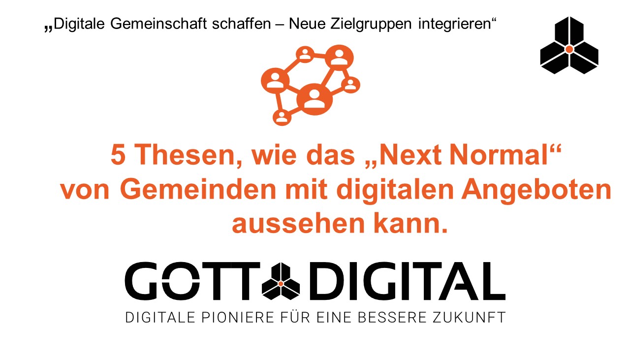 Im Rahmen der Next Normal Konferenz  – Wie kann Kirche künftig aussehen? – hat GottDigital den Workshop „Digitale Gemeinschaft schaffen – Neue Zielgruppen integrieren“ durchgeführt.